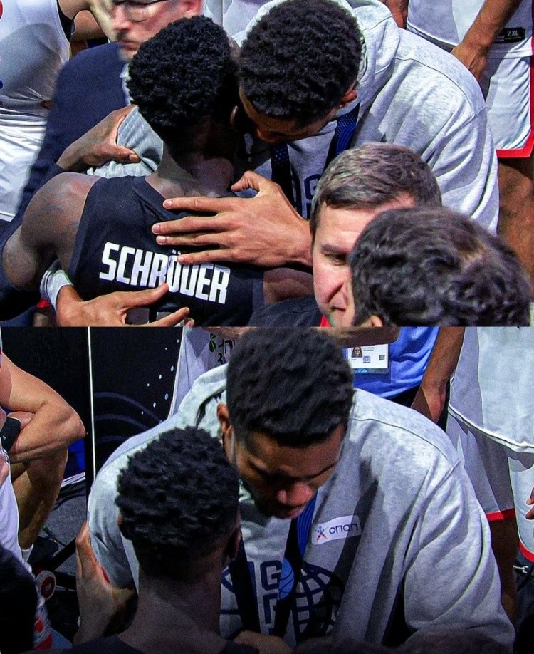 比赛赛后,同时入选最佳阵容的字母哥和施罗德拥抱致意。对此,施罗德表示:“扬尼斯做出了非常棒的举动,他主动来找我,说我们各自代表德国和希腊为国征战,而他这次也终于为希腊队赢得了首枚大赛奖牌。我对他只有敬佩——他有四个可爱的孩子、贤惠的妻子,还有始终陪伴他的兄弟,一家人都在为篮球事业努力。更不用说他在NBA赛场上的表现,那完全是另一个级别的存在,绝对是世界顶尖球员之一。他主动过来和我交流,这种举动充满了体育精神,非常难得。他还说一直在看我们球队的YouTube视频,我觉得这种跨国家的球员互动,对希腊和德国的篮球交流也很有意义。”