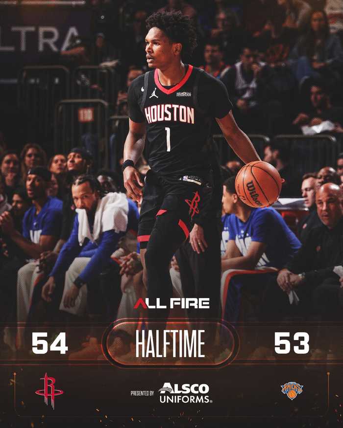 火箭半场54-53领先尼克斯,杜兰特申京各得13分