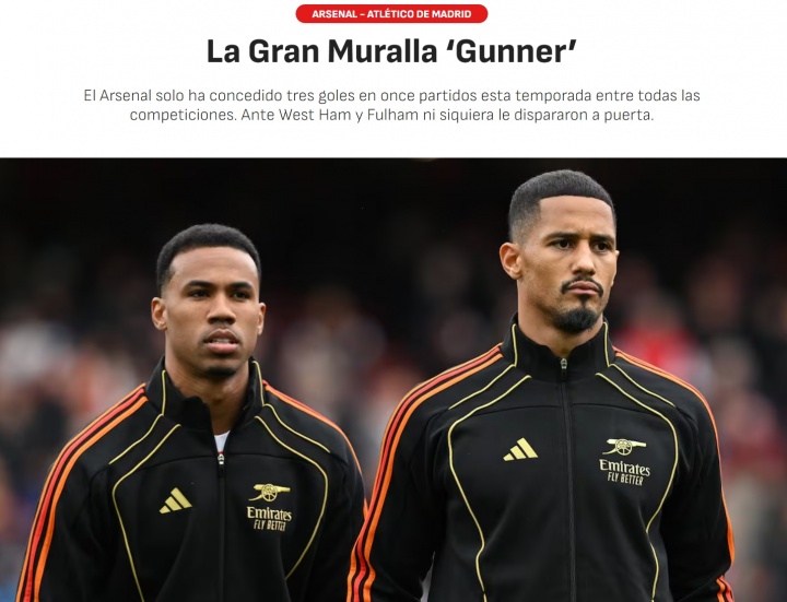 10月20日讯 北京时间10月22日周三凌晨3点,阿森纳将在欧冠第3轮迎战马竞,赛前西班牙媒体《阿斯报》关注了阿森纳近期连续零封的出色防守表现,感叹枪手防线犹如“长城”。